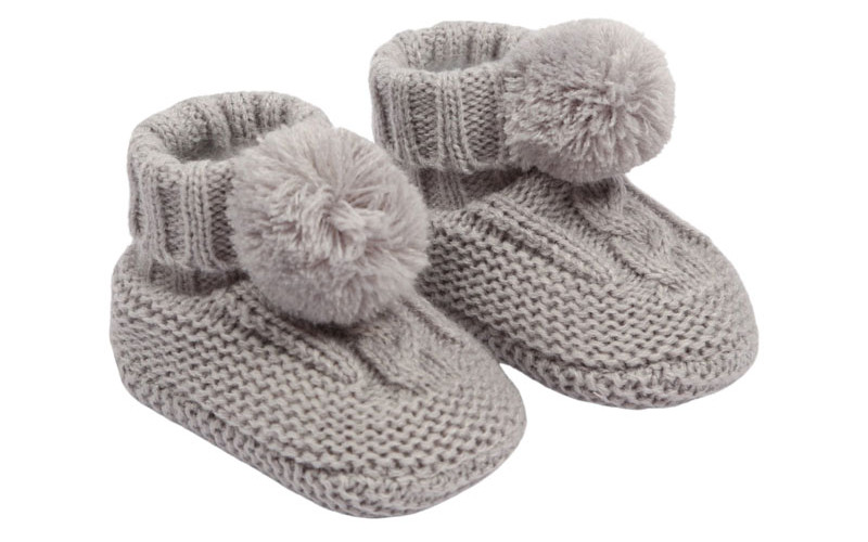 Cable Knit Bootees with Pom-Pom ABO12: